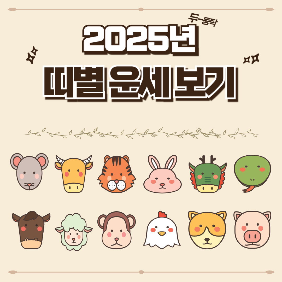2025년이 다가오고 있습니다. 새해를 맞이하여 2025년 띠별 운세도 같이 확인하고 2025년 띠별 운세 무료 보기, 다양한 정보를 소개해드리겠습니다. 2025년 12 간지 띠별 운세를 확인해 보세요.